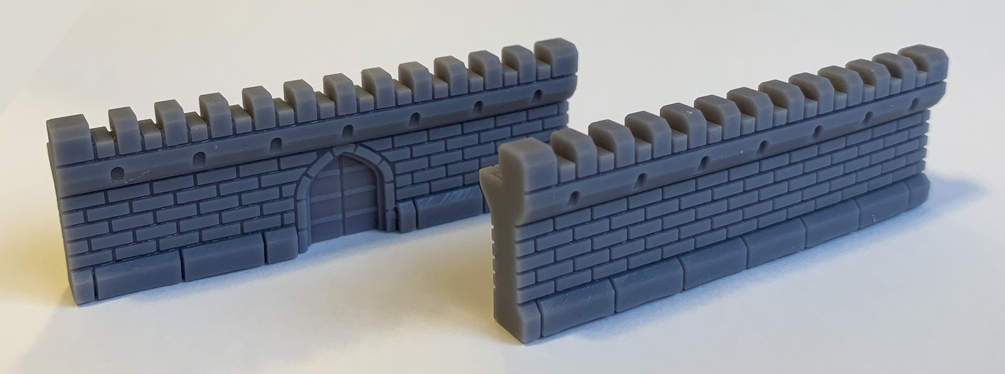 5 Stl digital files which can be 3d printed to produce; straight wall sections, angled wall sections, straight gate sections, angled gate sections, wall towers